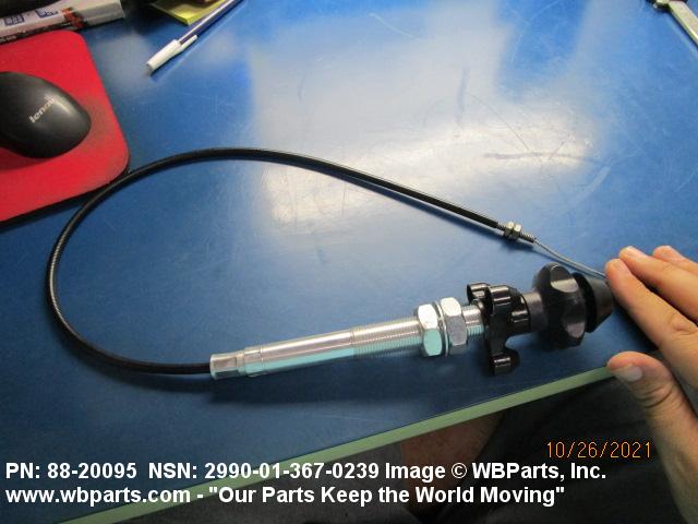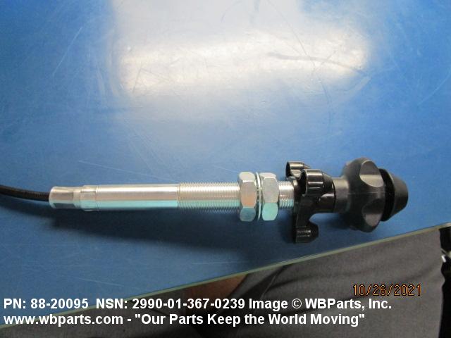 2990-01-367-0239 A control consisting of a wire, wire rope, or a center load rail with ball bearings, within a flexible conduit. One end must have a threaded sleeve for mounting to a wall, bulkhead, or handle, or clevis. It is used to operate or control, either manually or mechanically a mechanical device. It may include such attaching devices as nut(s), washer(s), clevis, bracket(s), and/or the like. For items designed to transmit rotary motion, see SHAFT ASSEMBLY, FLEXIBLE.20516800049Miscellaneous Aircraft Accessories and Components25900034Miscellaneous Vehicular Components29900045Miscellaneous Engine Accessories, Nonaircraft29950042Miscellaneous Engine Accessories, Aircraft30400042Miscellaneous Power Transmission Equipment