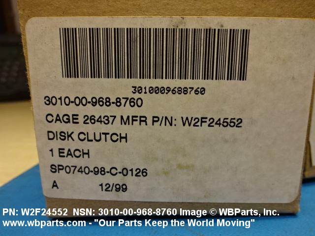 Part Alternates: W2F24552, 3010-00-968-8760, 00-968-8760, 3010009688760, 009688760