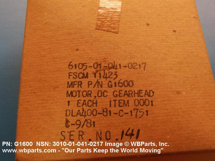 NSN 3010-01-041-0217 G1600, 887C050809, 887F050048PC13