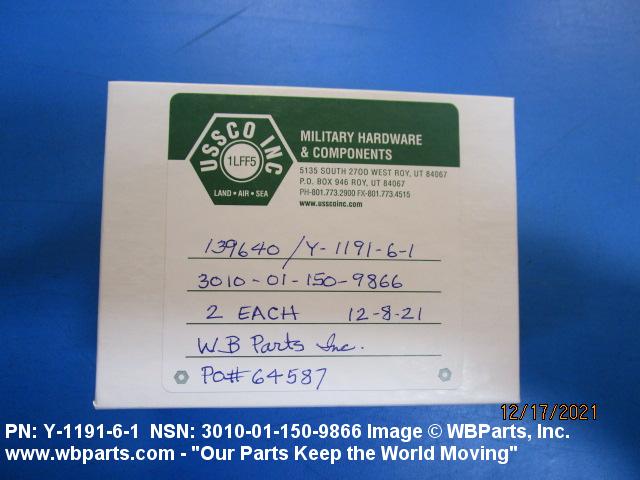 Part Alternates: Y119161, Y-1191-6-1, 139640, 3010-01-150-9866, 01-150-9866, 3010011509866, 011509866