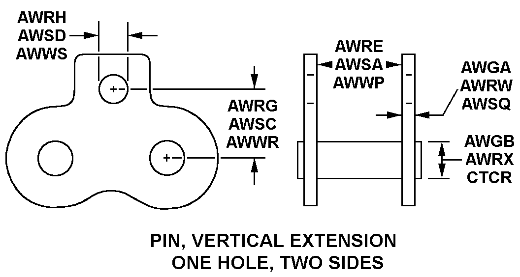 | LINK STYLE | A10 PIN, VERTICAL EXTENSION ONE HOLE, TWO SIDES |