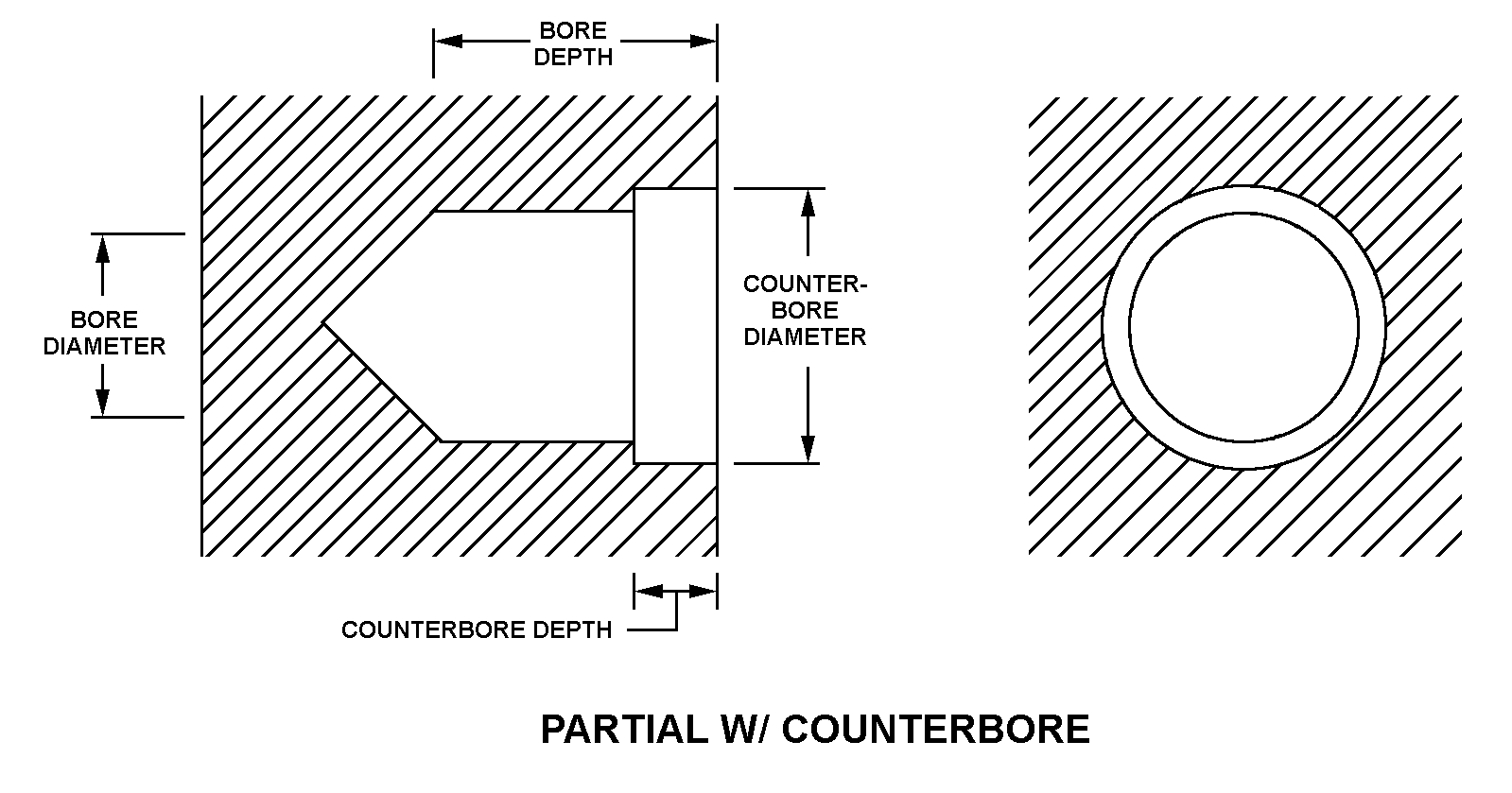 | BORE STYLE | 16 PARTIAL W/COUNTERBORE COUNTER BORE, SECOND END |