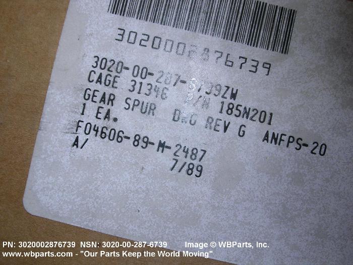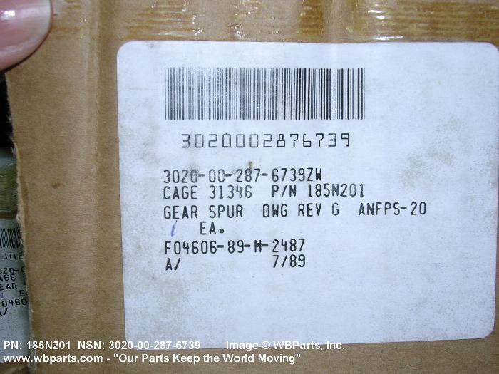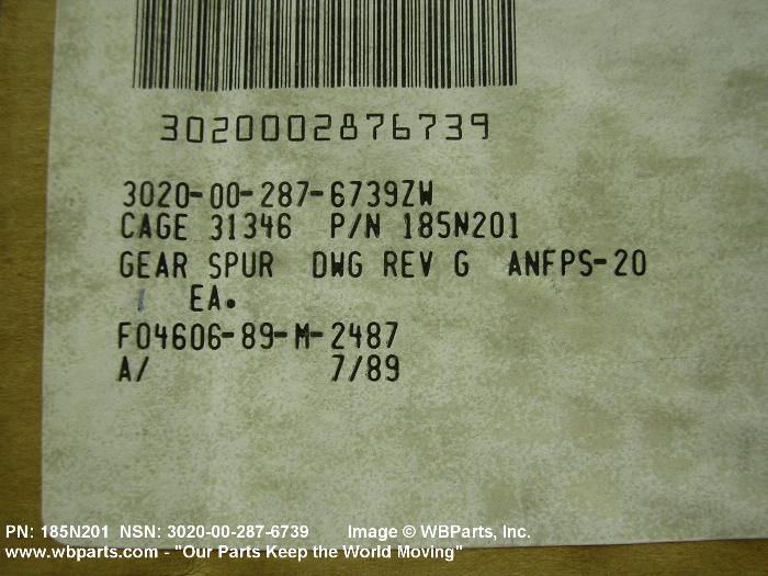 NSN 3020-00-287-6739 185N201, 00-287-6739, 002876739