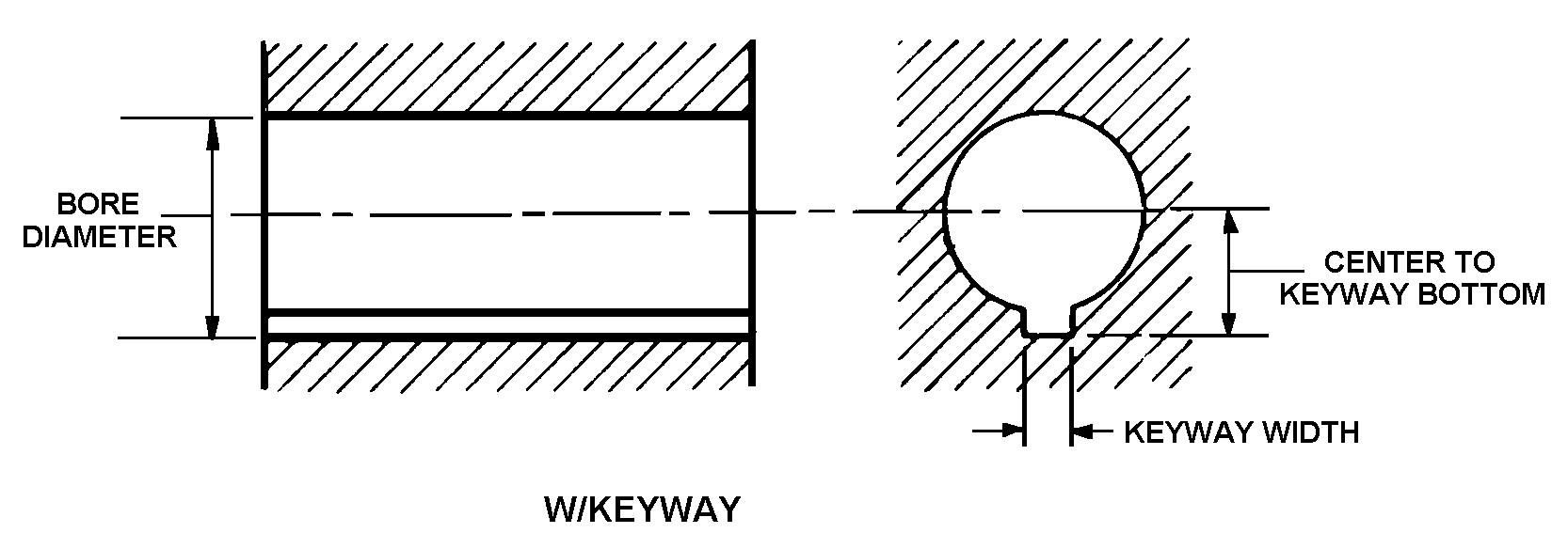 | NOMINAL DISTANCE FROM BORE CENTER TO KEYWAY BOTTOM | 0.101 INCHES BOTH ENDS |
