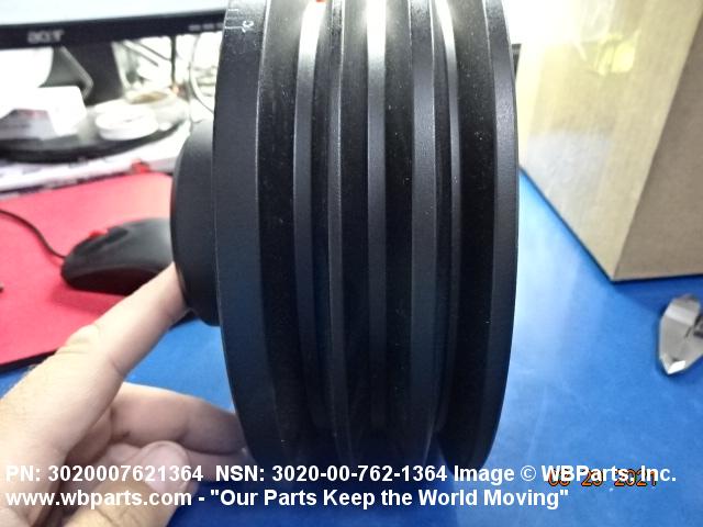 3020-00-762-1364 A pulley with one or more grooved faces or rims of the same diameter. For pulleys encased in a shell or frame, see BLOCK, TACKLE. For items specifically designed for aviation, see PULLEY(1), GROOVE, AVIATION.