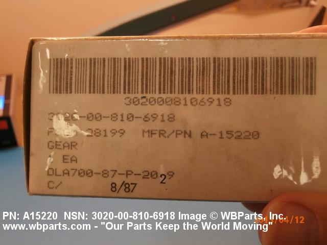 NSN 3020-00-810-6918 A15220, 00-810-6918, 008106918