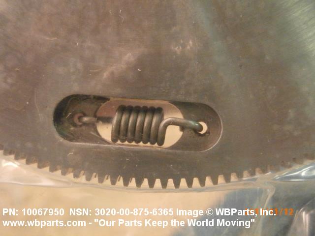 3020-00-875-8865 An item having one fixed gear and one free gear, both having the same complement of spur gear teeth, mounted on a common hub. The free gear is attached to the fixed gear by springs and operates as one gear. Upon installation with the mating gear, the teeth of the free moving gear are preset to mesh with teeth other than those of the fixed gear. This spring tension between the fixed gear and the free gear eliminates any free motion between the driver and the driven gear. The gear is used where identical and accurate transmitted motion between gears is required.