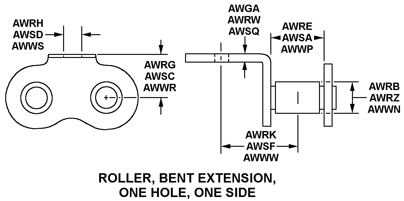 | LINK STYLE | A9 ROLLER, BENT EXTENSION, ONE HOLE, ONE SIDE |