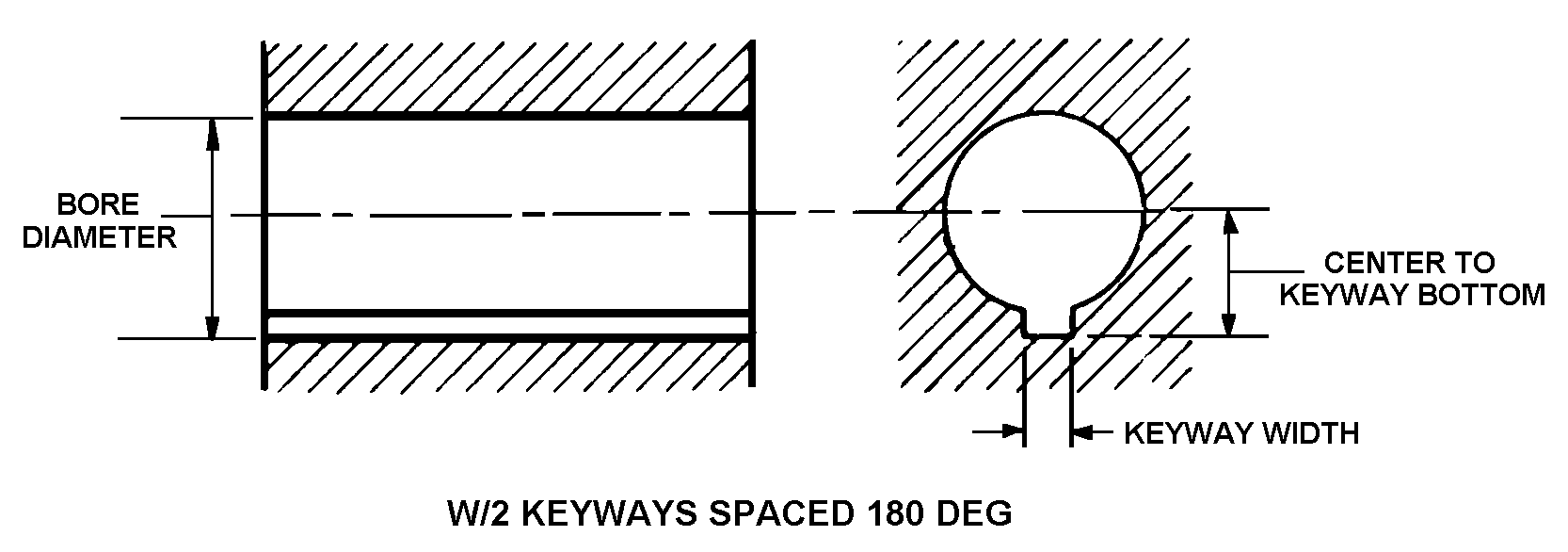 | NOMINAL DISTANCE FROM BORE CENTER TO KEYWAY BOTTOM | 0.551 INCHES BOTH ENDS |