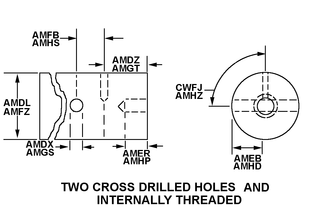 | SECOND END STYLE | 90 TWO CROSS DRILLED HOLES AND INTERNALLY THREADED |