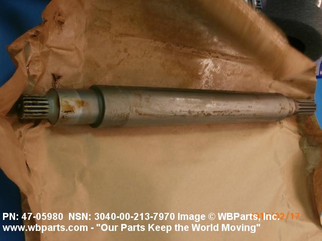 3040-00-213-7970 A shaft having two or more different diameters (greater than 0.031 inches (0.79 millimeter)) along its length. It must have one or more of the following conditions: a specified surface finish designation in the range 1 to 125 microinches (0.025 to 3.2 micrometers) arithmetical average (AA), machined peripheral flat(s), circular groove(s), keyway(s), splines, threads, or holes. The ends and/or shoulders may be machined to accommodate bearings, couplings, and the like. It is not designed for use in aligning by fitting into corresponding holes of another item. For items used to support rotating members see AXLE(1), SHOULDERED. For items not having any of the above conditions see PIN, SHOULDER, HEADLESS. Excludes SHAFT(1), STRAIGHT; and AXLE(1), STRAIGHT.
