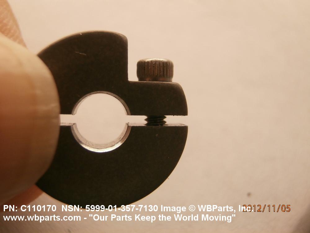 3040-00-244-2807 An item designed to be mounted around the extended hub portion of a gear, wheel, or the like, to retain it securely to a shaft by compressing the slotted hub body. The item may also be used to clamp around a shaft, or the like, to prevent end motion or to retain it in position. Its compression quality is derived from a screw(s) or bolt(s) which may be a part of the item of supply. For items designed to secure directly to a shaft by use of setscrews, pins, or the like, see COLLAR, SHAFT. Excludes CLAMP, LOOP.