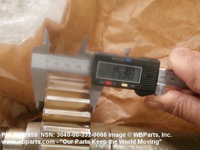 3040-00-332-0066 A gearshaft with a single complement of spur gear teeth. For items with more than one complement of teeth, see GEARSHAFT (1), MULTIPLE GEARS.