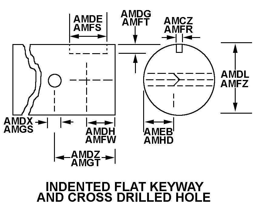 | SECOND END STYLE | 56 INDENTED FLAT KEYWAY AND CROSS DRILLED HOLE |