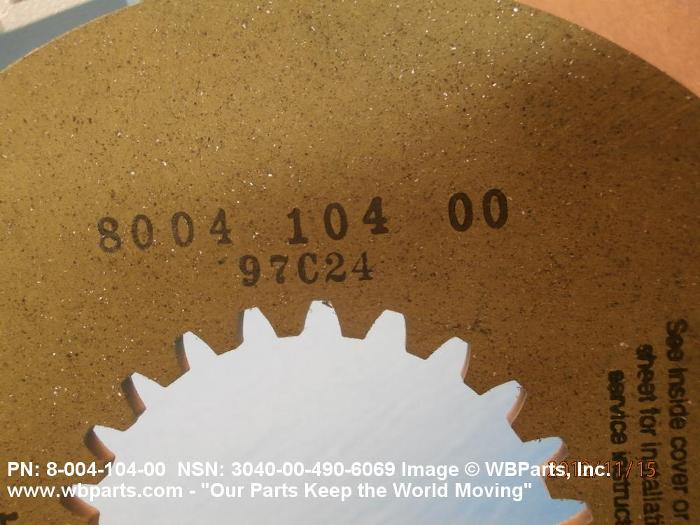 3040-00-490-6069 A fibrous and/or metallic material with or without binders and/or compounds, cut or molded to a specific size. It may be a segment or a complete lining. It is usually designed to be fastened to a shoe, disk, band, cone, or the like, but may be installed without fastening. It provides a friction surface for transmitting, retarding, or stopping motion. Excludes LINING MATERIAL, FRICTION.20716300032Aircraft Wheel and Brake Systems16800049Miscellaneous Aircraft Accessories and Components20300014Deck Machinery25200039Vehicular Power Transmission Components25300060Vehicular Brake, Steering, Axle, Wheel, and Track Components30400042Miscellaneous Power Transmission Equipment39500037Winches, Hoists, Cranes, and Derricks