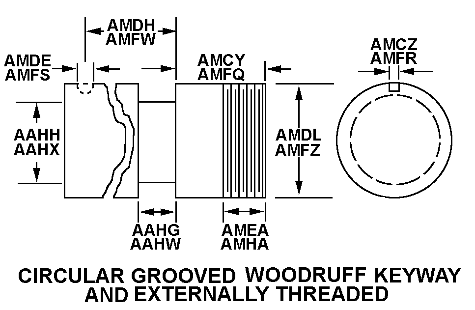 | SECOND END STYLE | 60 CIRCULAR GROOVED WOODRUFF KEYWAY AND EXTERNALLY THREADED |