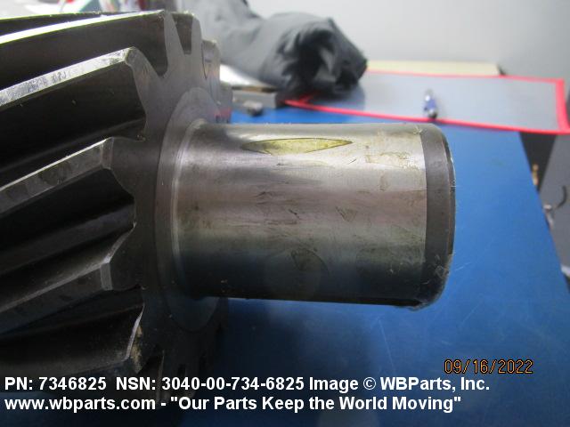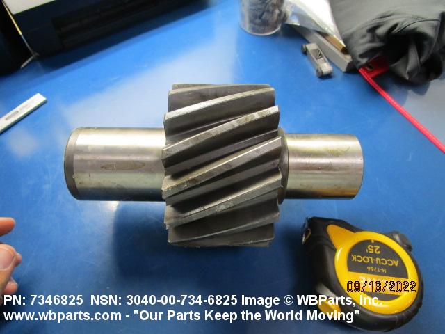3040-00-734-6825 A gearshaft with a single complement of helical gear teeth. For items with more than one complement of teeth, see GEARSHAFT (1), MULTIPLE GEARS.