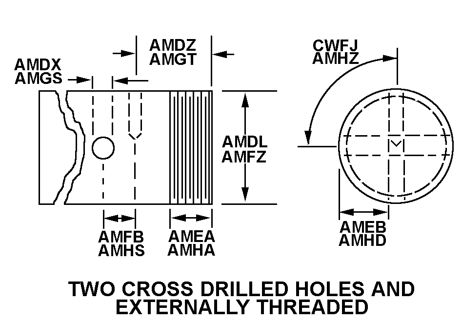 | FIRST END STYLE | 88 TWO CROSS DRILLED HOLES AND EXTERNALLY THREADED |