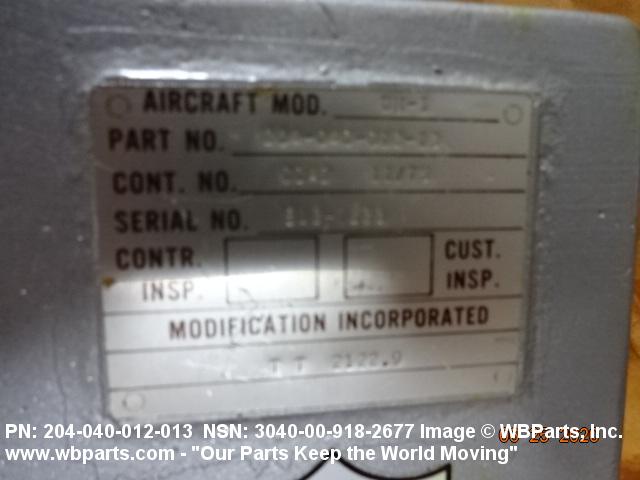 Part Alternates: 204040012013, 204-040-012-013, 2040400121, 204-040-012-1 , 20404001213, 204-040-012-13, 3040-00-918-2677, 00-918-2677, 3040009182677, 009182677