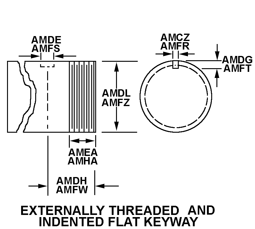| SECOND END STYLE | 38 EXTERNALLY THREADED AND INDENTED FLAT KEYWAY |