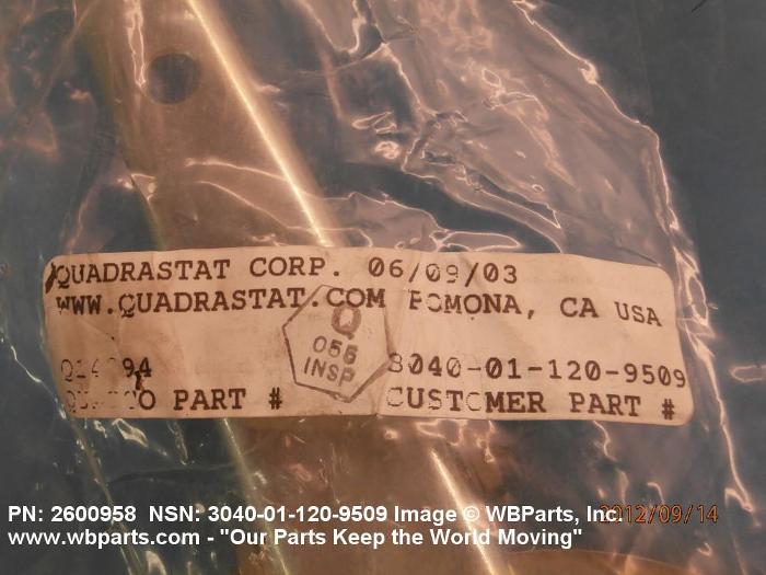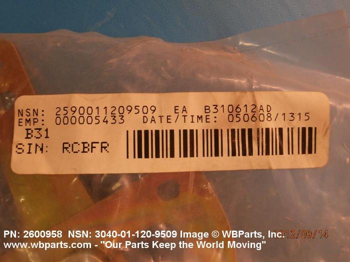 Part Alternates: Q14094, 2588254 , 2600958, 3040-01-120-9509, 01-120-9509, 3040011209509, 011209509