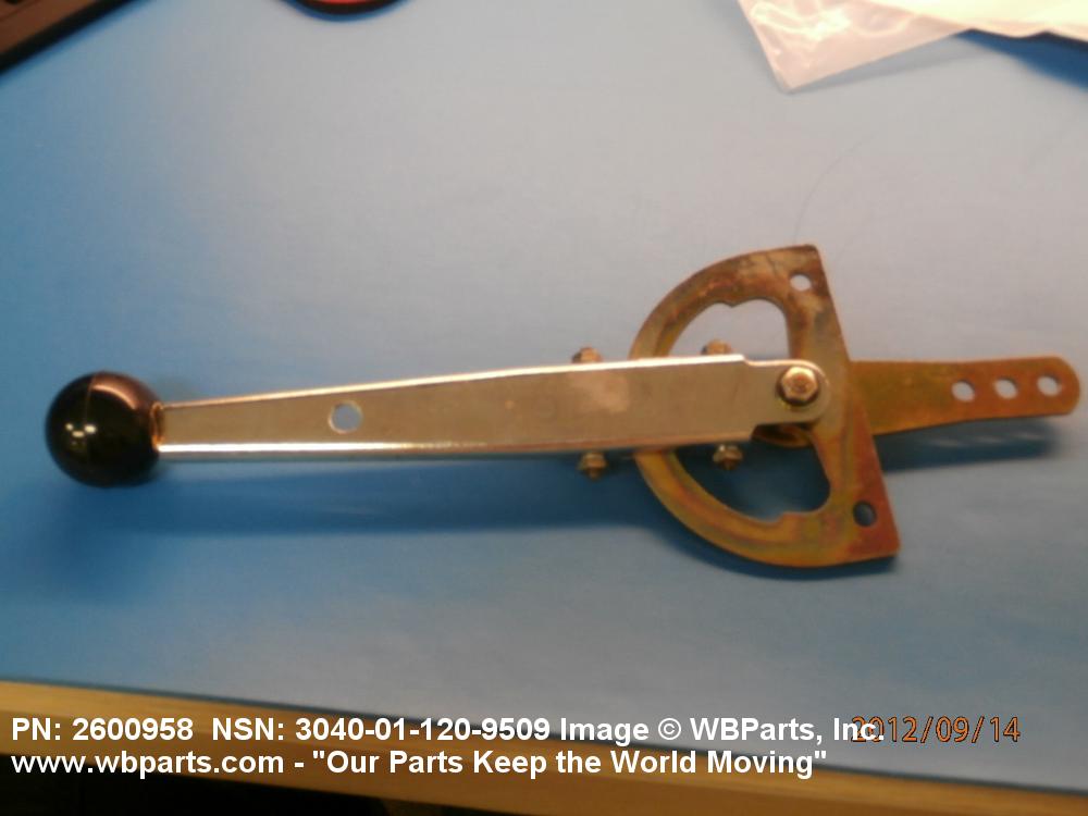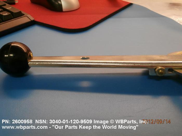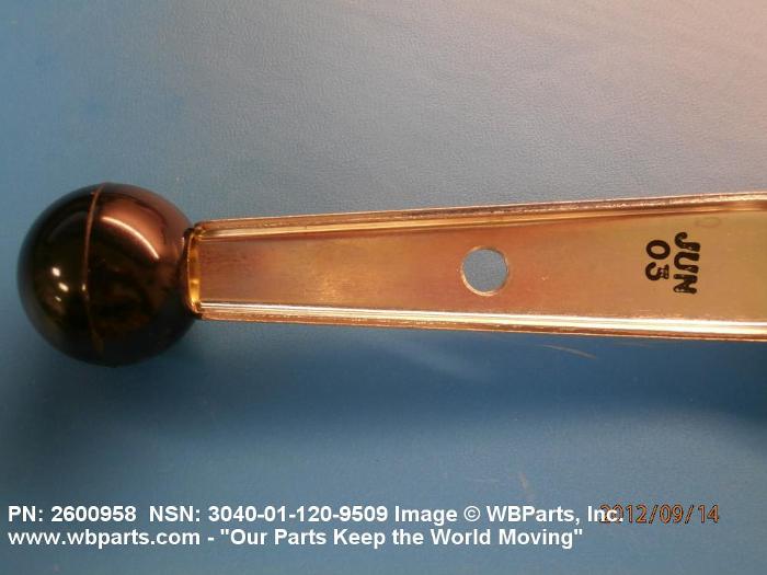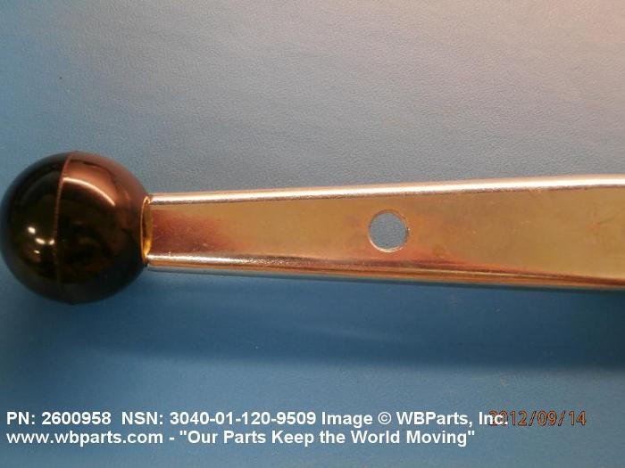 3040-01-120-9509 A rigid item of various shapes and cross-sections, specifically designed to manually actuate and/or regulate a variety of mechanisms. It usually has an integral handgrip, knob, or the like, or provisions for the mounting of the same. It may have accommodations for locking and/or positioning. The point of fulcrum may be an integral shaft perpendicular to the axis or a through hole to provide a definite means of securing, and usually has additional accommodation(s) for attachment of CONNECTING LINK, RIGID; WIRE ROPE ASSEMBLY, SINGLE LEG; and CLEVIS, ROD END; etc.. Excludes ARM (as modified); LEVER, REMOTE CONTROL; and BELL CRANK.20511150037Nuclear Warheads and Warhead Sections11250026Nuclear Demolition Charges11900057Specialized Test and Handling Equipment, Nuclear Ordnance30400042Miscellaneous Power Transmission Equipment53400020Hardware, Commercial