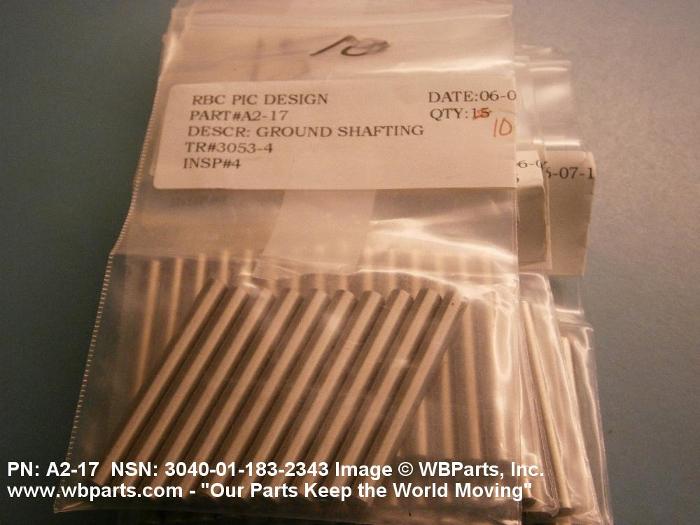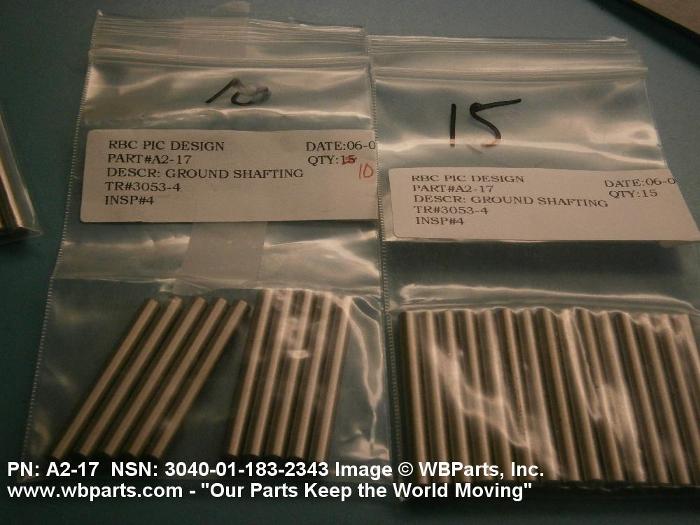 3040-01-183-2343 A straight shaft having two or more of the following conditions: a specified surface finish designation in the range of 1 to 125 microinches (o.o25 to 3.2 micrometers), arithmetical average (aa), machined peripheral flat(s), circular groove (s), keyway(s), splines, threads, or holes. It is not designed for use in aligning by fitting into corresponding holes of another item. It may be drilled for lubricating holes. For items having an integral gear(s) or worm(s), see GEARSHAFT (as modified). For items designed to support rotating members see AXLE(1), STRAIGHT. For items not having the above conditions see PIN, STRAIGHT, HEADLESS. For items having machined ends which constitute steps see SHAFT(1), SHOULDERED; AXLE(1), SHOULDERED; and BOLT, FLUID PASSAGE.20310050000101500003040000000