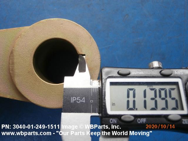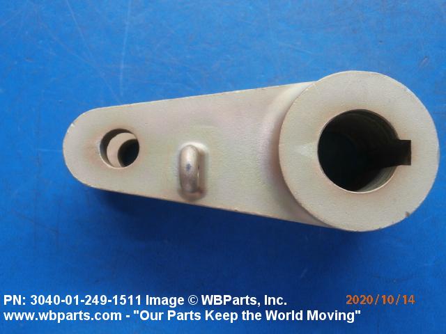 3040-01-249-1511 A rigid item usually in the form of an arm of various shapes and cross sections, containing two or more holes so spaced that one serves as a pivot with or without hubs and must have a definite means for securing to a shaft (such as threaded hole for set-screw, keyway(s), splines, serrations or some clamping device). The other hole(s) connect(s) to CONNECTING LINK, RIGID; WIRE ROPE ASSEMBLY, SINGLE LEG; or CLEVIS, ROD END; to provide transmission of movement to other parts of the mechanism. See also BELL CRANK. For manually operated items see LEVER, MANUAL CONTROL.20311900057Specialized Test and Handling Equipment, Nuclear Ordnance16800049Miscellaneous Aircraft Accessories and Components30400042Miscellaneous Power Transmission Equipment