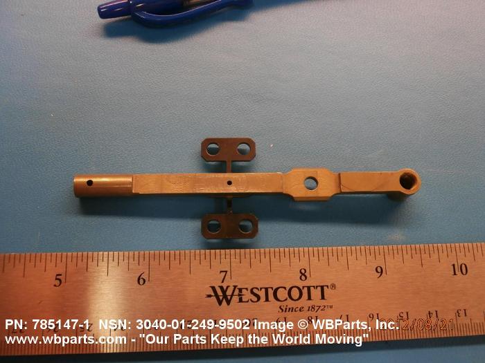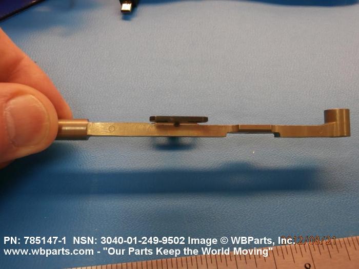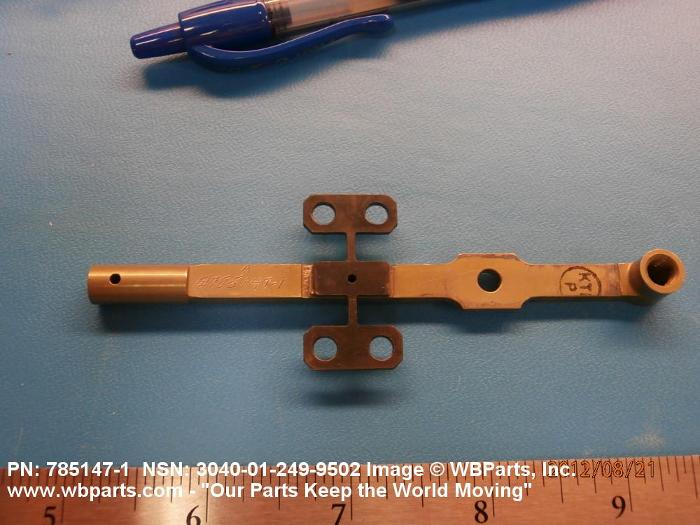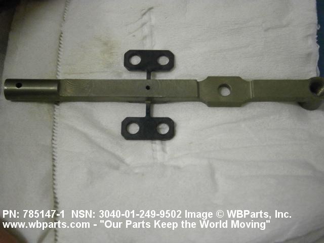 3040-01-249-9502 A rigid item usually in the form of an arm of various shapes and cross sections, containing two or more holes so spaced that one serves as a pivot with or without hubs and must have a definite means for securing to a shaft (such as threaded hole for set-screw, keyway(s), splines, serrations or some clamping device). The other hole(s) connect(s) to CONNECTING LINK, RIGID; WIRE ROPE ASSEMBLY, SINGLE LEG; or CLEVIS, ROD END; to provide transmission of movement to other parts of the mechanism. See also BELL CRANK. For manually operated items see LEVER, MANUAL CONTROL.20311900057Specialized Test and Handling Equipment, Nuclear Ordnance16800049Miscellaneous Aircraft Accessories and Components30400042Miscellaneous Power Transmission Equipment
