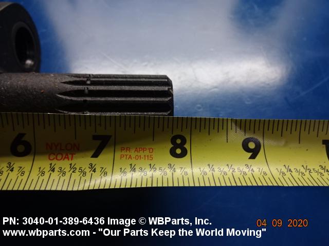 3040-01-389-6436 A shaft having two or more different diameters (greater than 0.031 inches (0.79 millimeter)) along its length. It must have one or more of the following conditions: a specified surface finish designation in the range 1 to 125 microinches (0.025 to 3.2 micrometers) arithmetical average (AA), machined peripheral flat(s), circular groove(s), keyway(s), splines, threads, or holes. The ends and/or shoulders may be machined to accommodate bearings, couplings, and the like. It is not designed for use in aligning by fitting into corresponding holes of another item. For items used to support rotating members see AXLE(1), SHOULDERED. For items not having any of the above conditions see PIN, SHOULDER, HEADLESS. Excludes SHAFT(1), STRAIGHT; and AXLE(1), STRAIGHT.