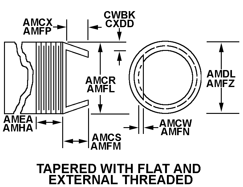 | SECOND END STYLE | 28 TAPERED WITH FLAT AND EXTERNALLY THREADED |