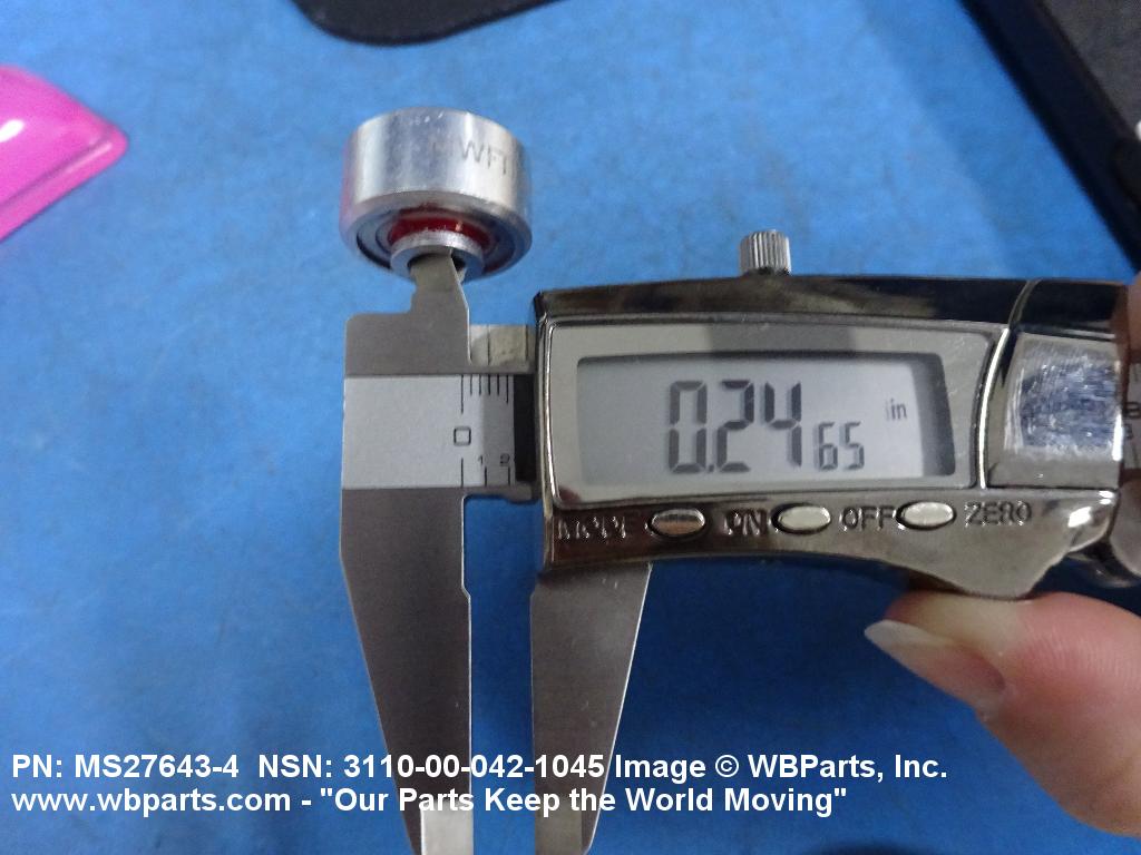 3110-00-042-1045 A cylindrical item in which the inner or outer ring turns upon row(s) of hardened BALL, BEARING which roll on a raceway, thus minimizing friction. These items are characterized by their noncorrosive qualities, lightness of weight, inch dimensions rather than metric, inner rings generally projecting beyond the faces of the outer ring, or a very narrow width inner ring having an outside diameter slightly larger than the bore diameter. Designed primarily for use in aircraft assemblies, such as control systems and surfaces of aircraft. Excludes BEARING, BALL, ANNULAR.