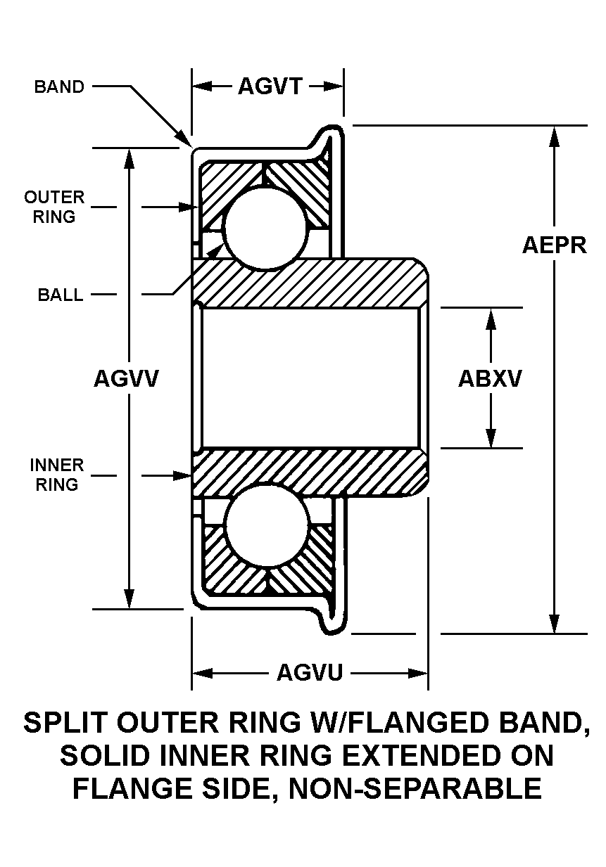| STYLE DESIGNATOR | 54 SPLIT OUTER RING WITH FLANGED BAND, SOLID INNER RING EXTENDED ON FLANGE SIDE, NON-SEPARABLE |