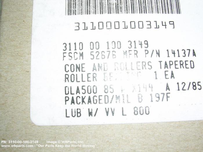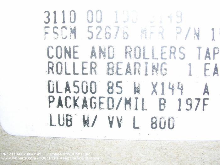 | 31 | 01 JAN 1961 | 00-100-3149 | 00023 ( CONE AND ROLLERS, TAPERED ROLLER BEARING ) |