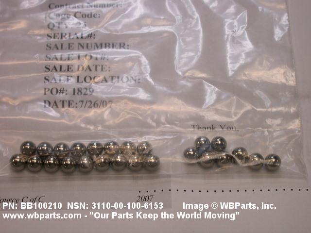 3110-00-100-6153 A homogenous spherical body, a series of which provides the rolling elements in a BEARING, BALL (as modified). The item is designed primarily to alleviate friction. It may have other usages such as the checking component in a ball-type check valve. Excludes BALL, CHECK; BALL, VALVE, PORTED.