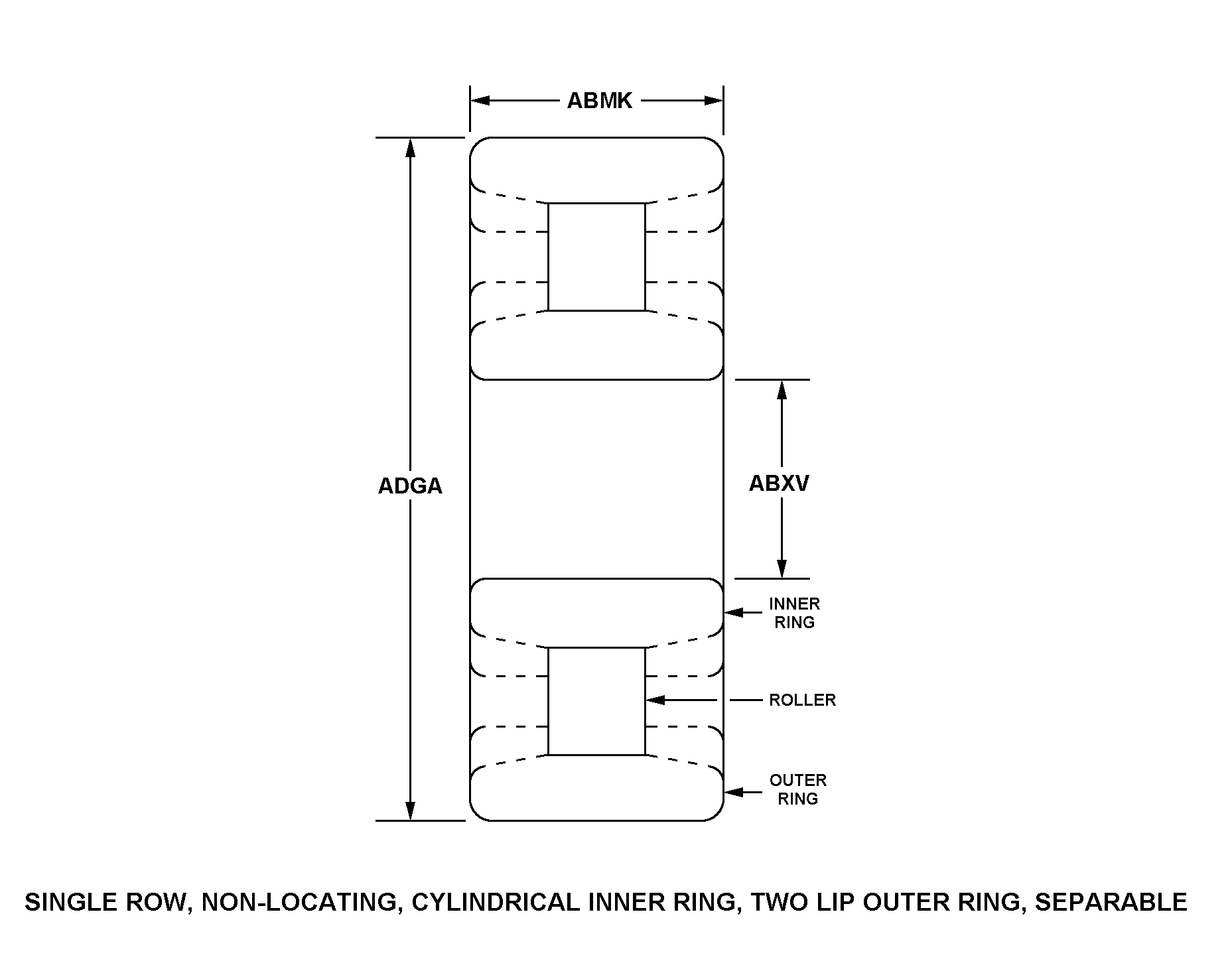 | STYLE DESIGNATOR | 252B SINGLE ROW, NON-LOCATING, CYLINDRICAL INNER RING, TWO LIP OUTER RING, SEPARABLE |