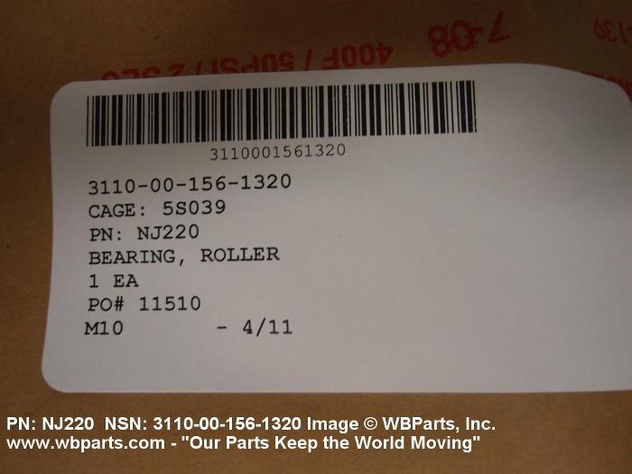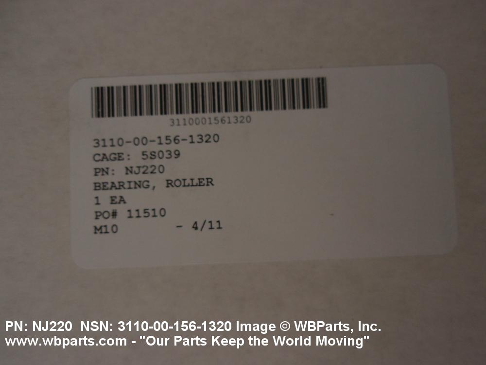 3110-00-156-1320 A nonadjustable roller bearing consisting of a single or multiple-row of hardened cylindrical rollers and a retainer used with or without inner or oute r rings. Excludes BEARING, ROLLER, AIRFRAME.