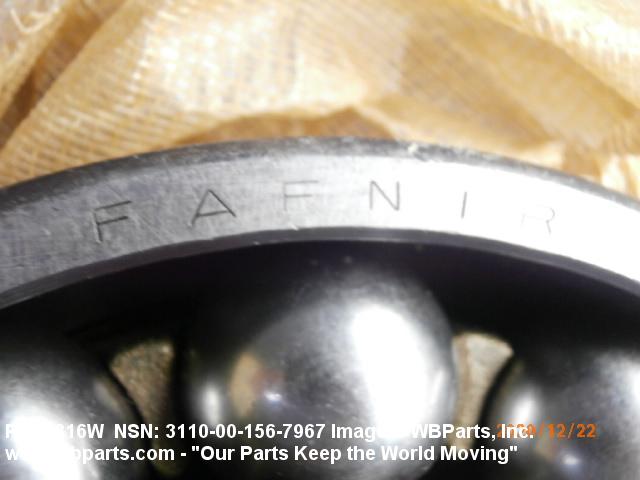 3110-00-156-7967 A cylindrical device in which the inner or outer ring turns upon a single or double row of hardened balls which roll easily between the two rings, thus minimizing friction. For items with faces specially ground for duplex mounting see BEARING, BALL, DUPLEX. Excludes BEARING, BALL, AIRFRAME.