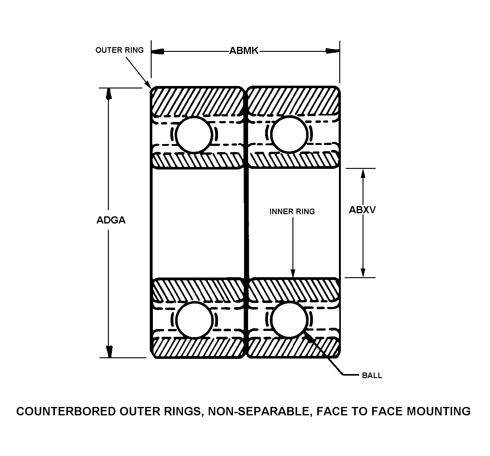 | STYLE DESIGNATOR | 92C COUNTERBORED OUTER RINGS, NON-SEPARABLE, FACE TO FACE MOUNTING |