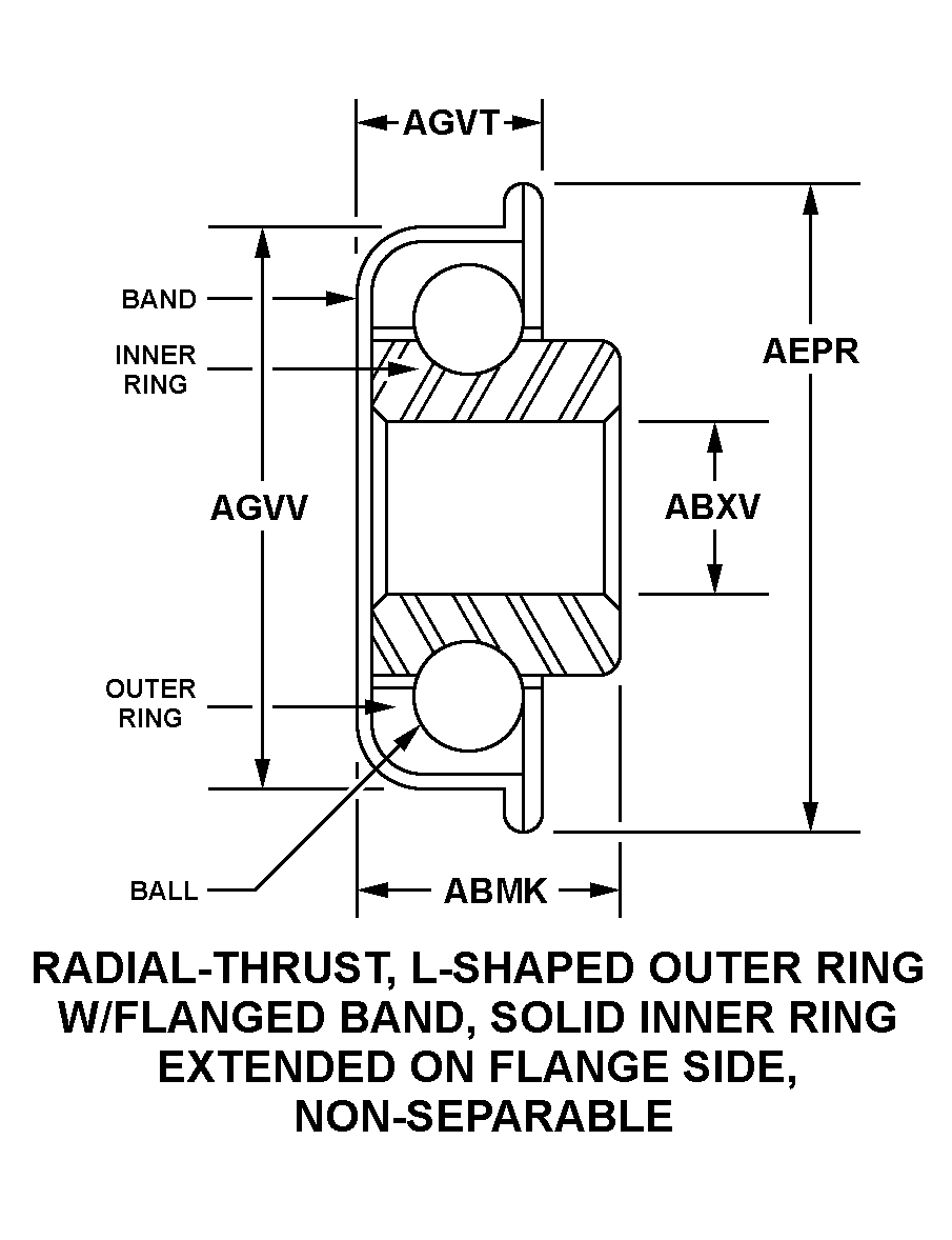 | STYLE DESIGNATOR | 58 RADIAL-THRUST, L-SHAPED OUTER RING WITH FLANGED BAND, SOLID INNER RING EXTENDED ON FLANGE SIDE, NON-SEPARABLE |