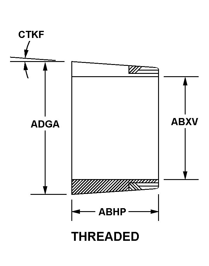 | SPECIAL FEATURES | 0.031 IN. BY 45 DEG BEV 0N THREADED END OD AND 0.187 IN. BY 45 DEG BEVEL ON BORE CORNER LARGE END ALSO 5.500-12 UN-2A THREAD 0.6875 IN. LG SMALL END ALSO RELIEF GROOVE 0.125 IN. WIDE FOLLOWING THD ALSO BORE AND OD 63 MICROINCH FINISH AA AND ALL OTHER SURFACES 125 MICROINCH FINISH AA ALSO 0.156 IN. BY 0.625 IN. DEYWAY IN THREADED END |