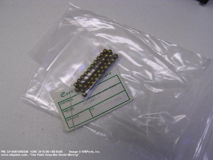 3110-00-185-6306 A homogenous spherical body, a series of which provides the rolling elements in a BEARING, BALL (as modified). The item is designed primarily to alleviate friction. It may have other usages such as the checking component in a ball-type check valve. Excludes BALL, CHECK; BALL, VALVE, PORTED.