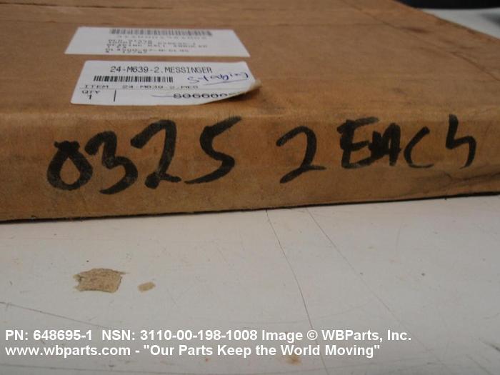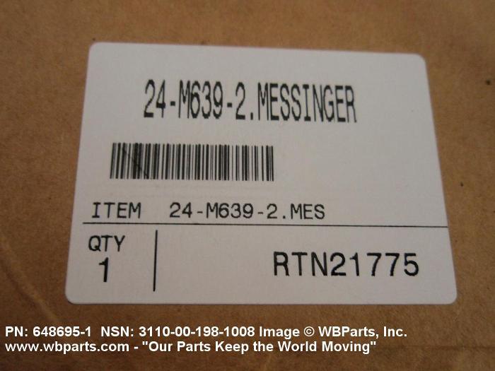 Part Alternates: 24M6392, 24M639-2, 6486951, 648695-1, 6486951REVH, 648695-1REVH, 3110-00-198-1008, 00-198-1008, 3110001981008, 001981008