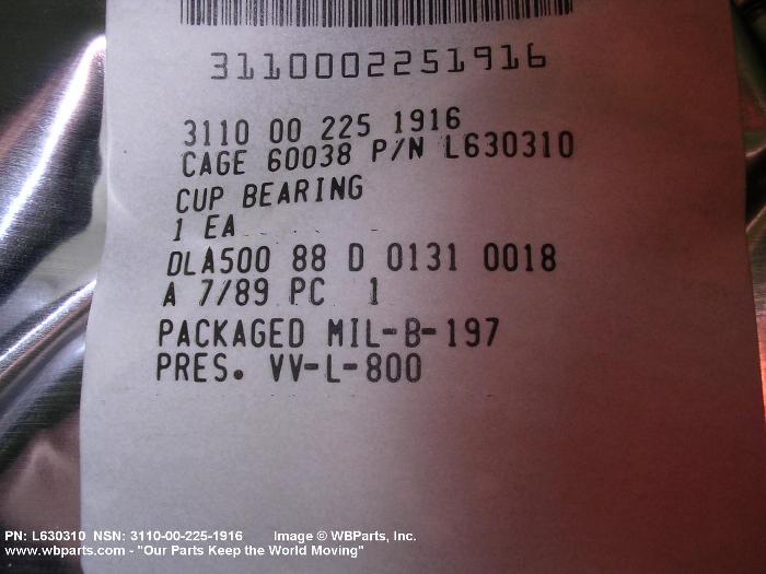 Part Alternates: L630310, 3110-00-225-1916, 00-225-1916, 3110002251916, 002251916