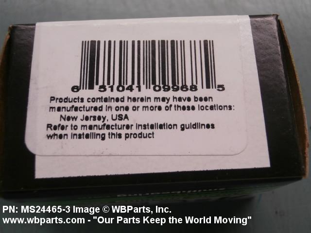 | MS24465-3 | 96906 | MILITARY STANDARDS PROMULGATED BY MILITARY DEPARTMENTS |