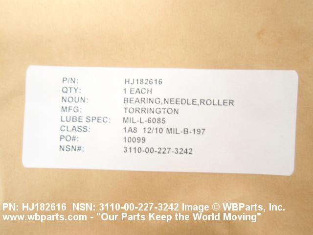| HJ182616 | 60380 | TIMKEN AEROSPACE, INC DBA TORRINGTON PRODUCT |