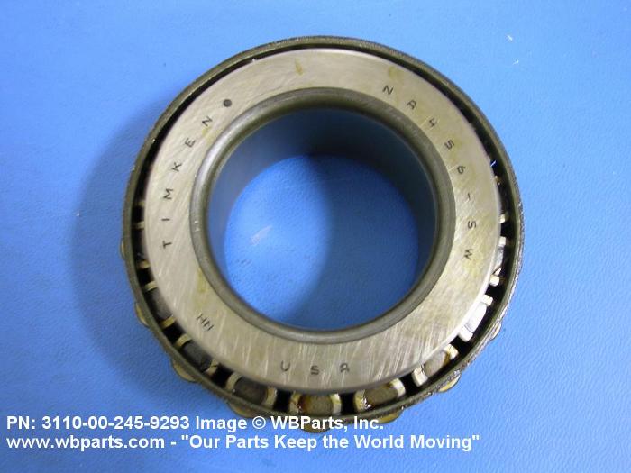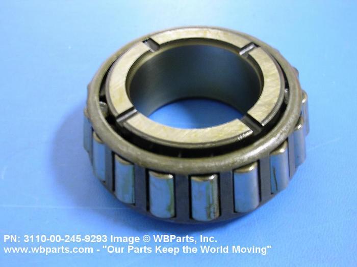 3110-00-245-9293 An assembled inner component of a tapered roller bearing, consisting of a cone (which provides a contact surface for the rolling elements of the bearing), a complement of tapered rollers (the rolling elements), and frequently a retainer (which spaces the rolling elements).