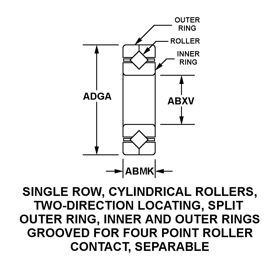 | STYLE DESIGNATOR | 286 SINGLE ROW, CYLINDRICAL ROLLERS, TWO-DIRECTION LOCATING, SPLIT OUTER RING, INNER AND OUTER RINGS GROOVED FOR FOUR POINT ROLLER CONTACT, SEPARABLE |