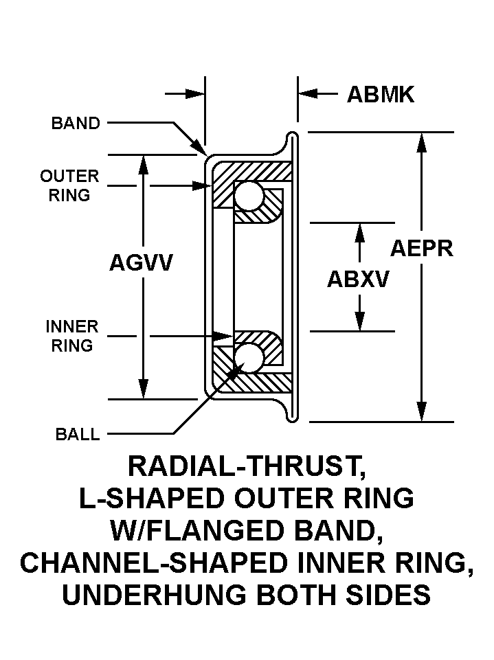 | STYLE DESIGNATOR | 72 RADIAL-THRUST, L-SHAPED OUTER RING WITH FLANGED BAND, CHANNEL-SHAPED INNER RING, UNDERHUNG BOTH SIDES |