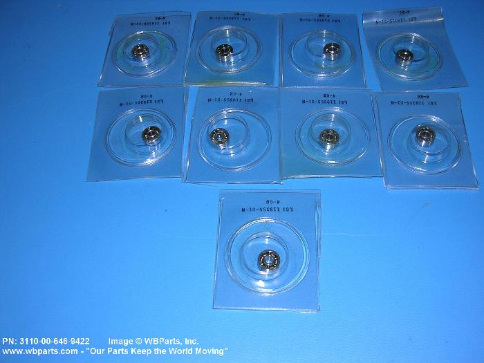 3110-00-646-9422 A cylindrical device in which the inner or outer ring turns upon a single or double row of hardened balls which roll easily between the two rings, thus minimizing friction. For items with faces specially ground for duplex mounting see BEARING, BALL, DUPLEX. Excludes BEARING, BALL, AIRFRAME.